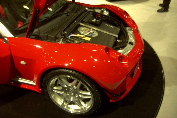 Der beim Serienmodell relativ großzügige vordere Kofferraum ist bei dem smart roadster-coupé v6 biturbo nicht mehr vorhanden. Stattdessen füllt ein Renntank den Platz aus, da der im Fahrzeugheck befindliche Serientank dem größeren Platzbedarf des v6-Triebwerkes weichen musste.