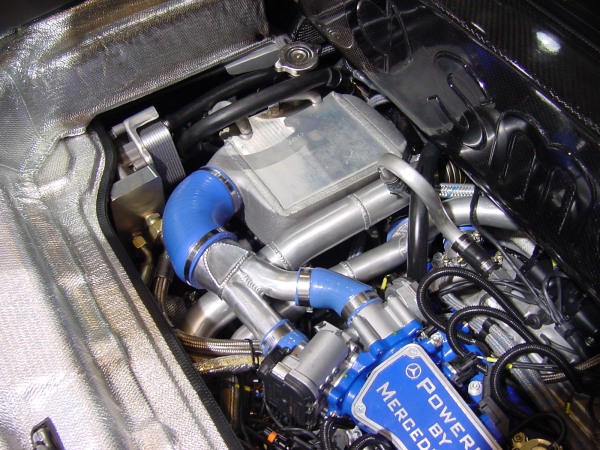Die Motorisierung des BRABUS smart roadster-coupé v6 biturbo nimmt vom Platzbedarf den gesamten Heckbereich in Anspruch. Ein Gepäckabteil ist am Fahrzeug nicht mehr vorhanden - bei einem solchen Automobil natürlich auch absolute Nebensache. Der Motorraum ist vollständig gegenüber der Fahrgastzelle gekapselt. Es kommt hier die vom smart roadster bekannte Heckscheibe zum Einsatz, die auf einer Karbon-Beplankung mündet.