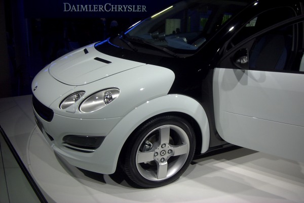 Die Sportlichkeit der Front des smart forfour kommt in der Farbkombination weiß/schwarz ganz besonders gut zur Geltung.