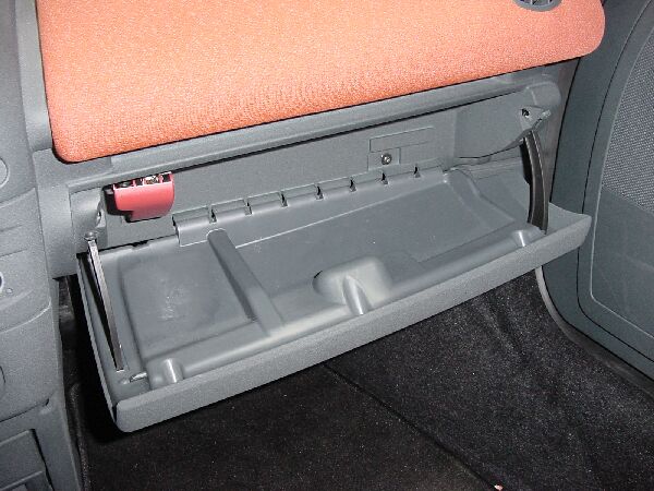 Handschuhfach mit Hebel zur Entriegelung des vorderen Kofferraum