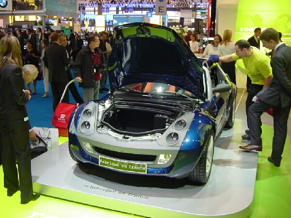Frontaufnahme smart roadster mit geöffnetem Kofferraum
